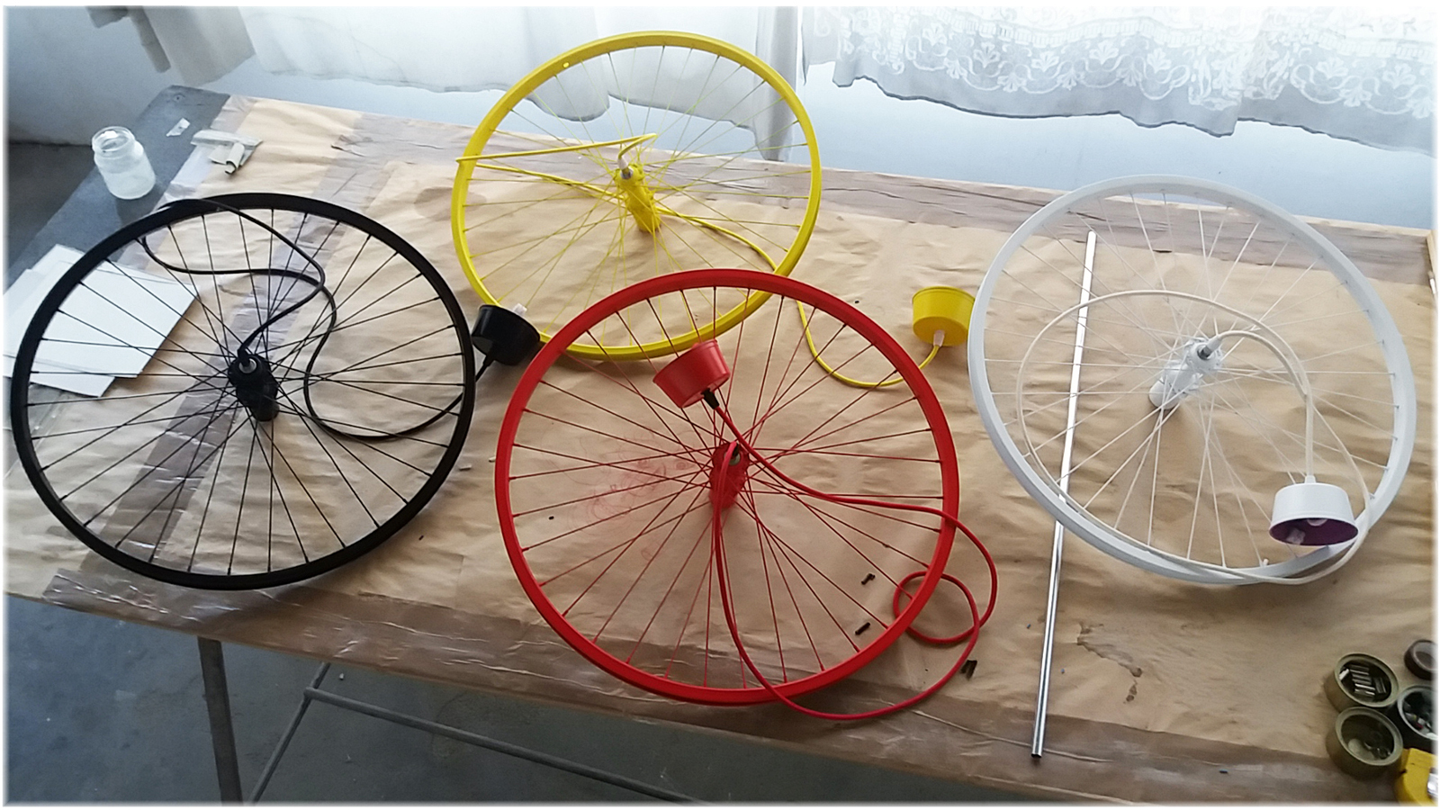 Lamp made of bicycle wheels