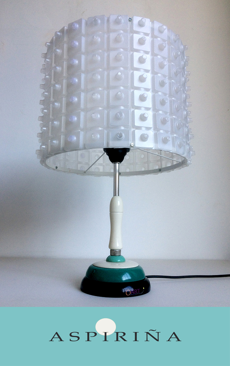 Lamp made of scrap wood and remains of the pharmaceutical industry